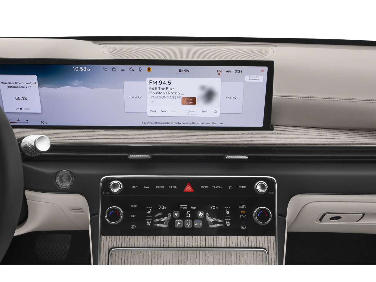 - Radio: AM/FM/SiriusXM/HD -inc: premium audio w/12 speakers, 27" integrated OLED instrument cluster and navigation system, SiriusXM Radio w/90-day subscription (not available in AK or HI), cloud connected platform (cloud profiles, connected routing, dynamic voice recognition, OTA updates), wireless Apple CarPlay, wireless Android Auto, Bluetooth® hands-free phone system w/audio streaming, wireless phone charger, Wi-Fi hotspot, steering wheel controls, USB and Genesis Connected Services Wireless Apple CarPlay and wireless Android Auto are late availability.