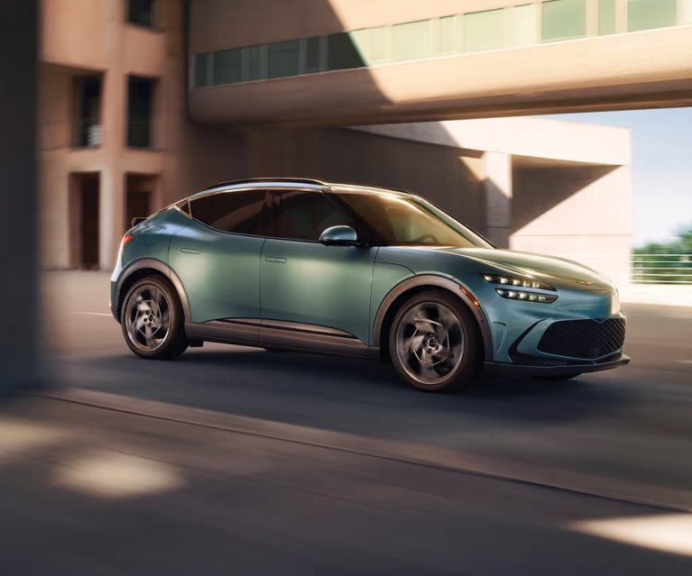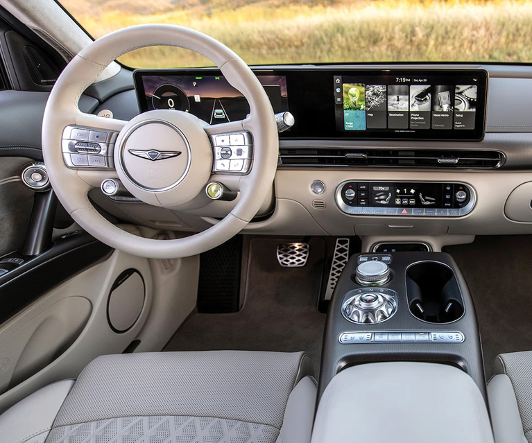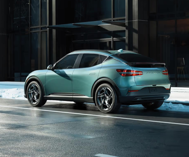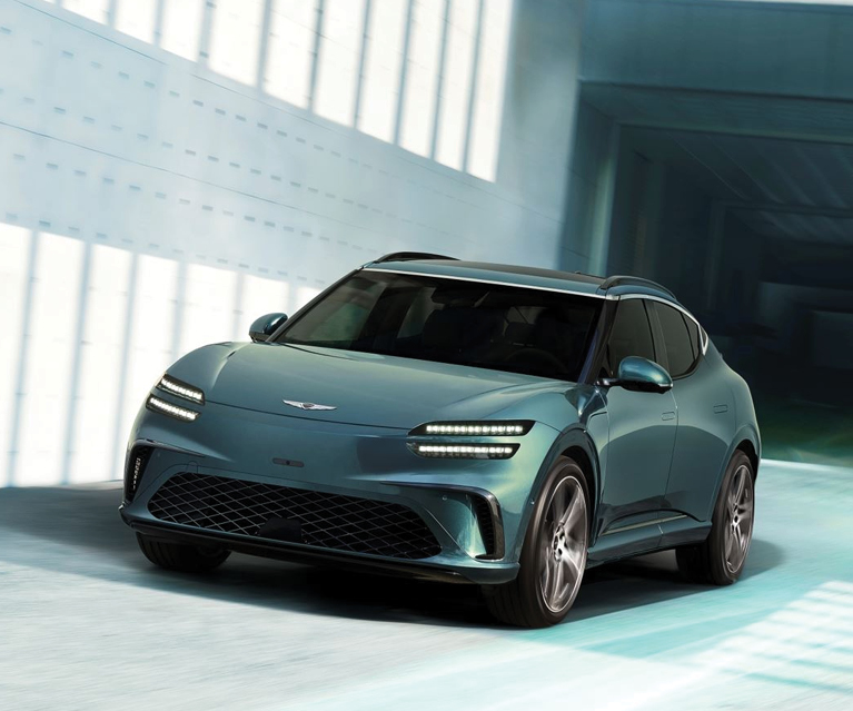 Up front, the signature Genesis crest grille is reimagined for electric performance, paired with dual-line headlights that create a confident, unmistakable face. Around back, a full-width LED light bar seals the deal—clean, modern, and just a little dramatic in all the right ways.