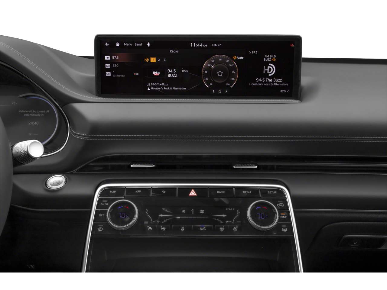- Radio: AM/FM/SiriusXM/HD Audio System -inc: 12 speakers, 6-channel internal amplifier, integrated navigation, 14.5" HD LCD screen, Apple CarPlay and Android Auto, Bluetooth® hands-free phone system w/audio streaming, steering wheel controls, USB and Genesis Connected Services